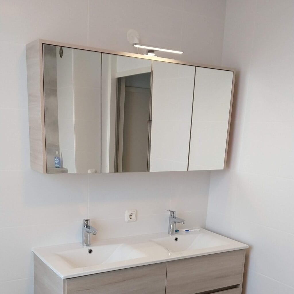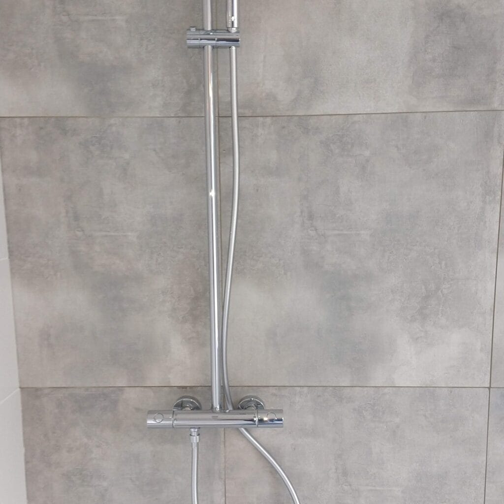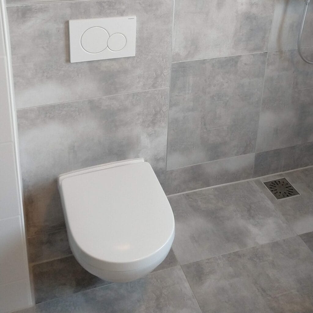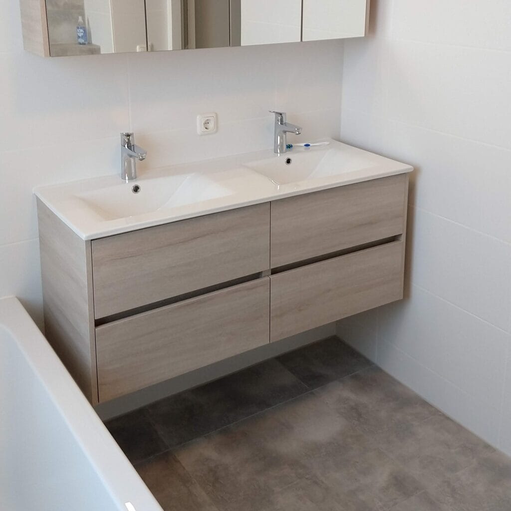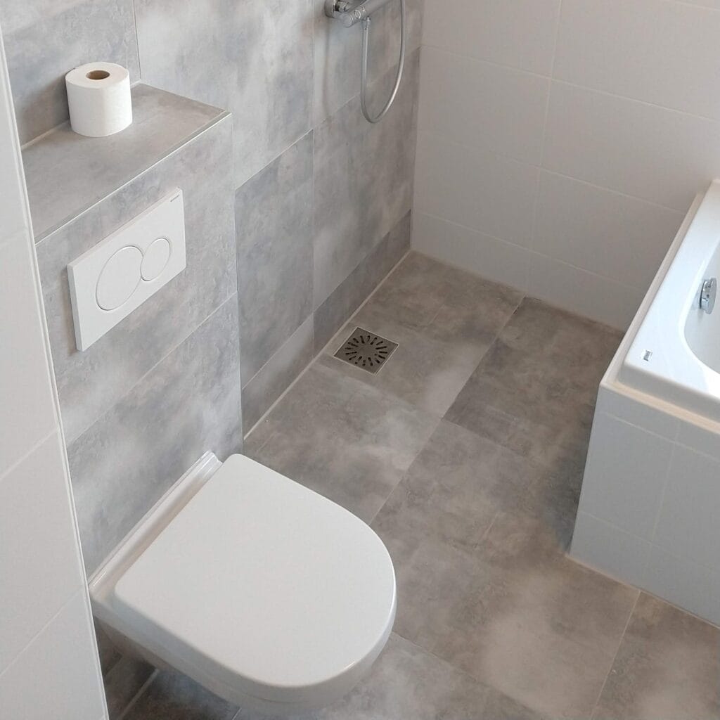 Deze badkamer is vloerverwarming geplaatst onder de tegels. uitdaging was hier weinig vierkante meters maar toch een bad met douche erin. Douche sluit direct aan op het bad. Op de zijkant van het bad kan eventueel nog een douchewand worden geplaatst.